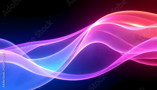 Flowing abstract wavy lines in blue, purple, and pink on black background