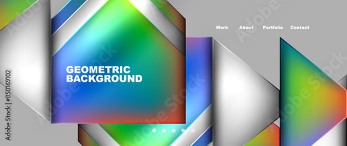 Flowing bright neon gradients geometric abstract background with triangles and lines. Fluid color pattern of color liquid gradient background for wallpaper, banner, background, card, landing page