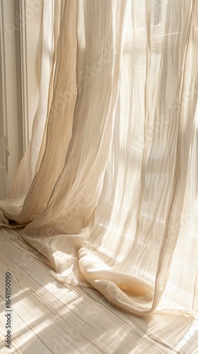 Flowing Linen Curtains with Soft Light and Delicate Texture in Warm Natural Hues