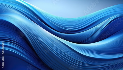 Flowing Oceanic Waves in Abstract Blue Tones. Serene Representation of Liquid Energy with Smooth Curves and Textures Blending in Calm Horizon