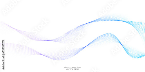 Flowing particles wave pattern colorful blue and purple gradient color isolated on white background with space for text banner. Vector in concept of AI technology, science, music, modern.
