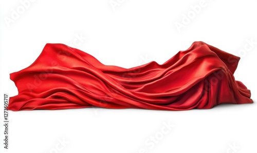Flowing red fabric draped elegantly, showcasing texture and movement against a plain background