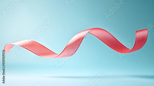 Flowing Red Ribbon on Soft Blue Background Creating Dynamic Movement and Elegance for Creative Design and Artistic Concepts