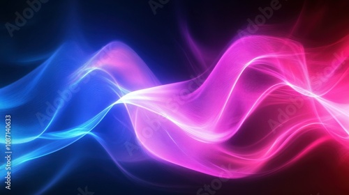 Flowing ribbons of vibrant pink and blue light, dynamic and energetic, futuristic abstract digital waves, high contrast.
