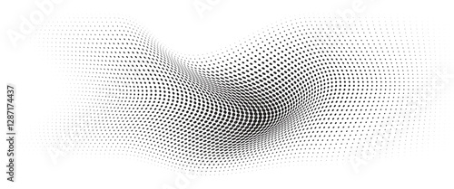 Flowing Wave Dot Halftone Pattern: Curve Gradient Shape on Transparent Background. Suitable for AI, Tech, Network, Digital, Science, and Technology Themes.