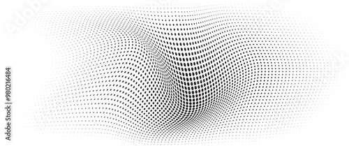 Flowing Wave Dot Halftone Pattern: Curve Gradient Shape on Transparent Background. Suitable for AI, Tech, Network, Digital, Science, and Technology Themes.