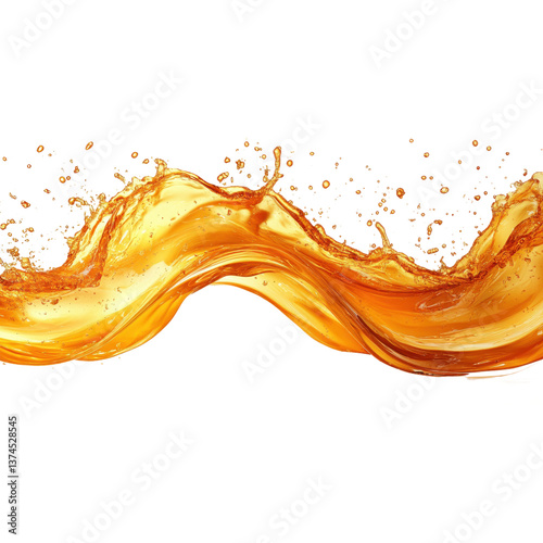 Flowing Wave of Vibrant Golden Liquid Abstract Transparent Background with cut out