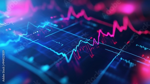 Fluctuating Stock Market Graph with Red and Blue Lines