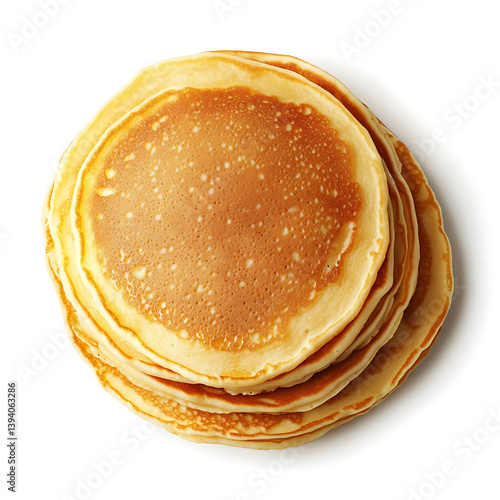 Fluffy and golden pancakes with a light, airy texture and a crispy edge, isolated white background