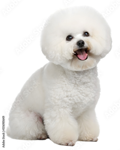 Fluffy Bichon Frise Sitting on White Background