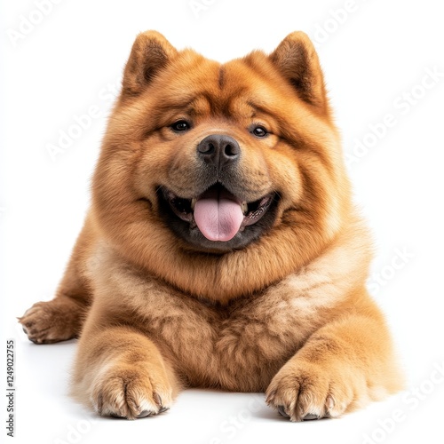 Fluffy Chow Chow Dog with Happy Expression on White Background