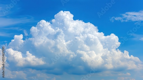 Fluffy cumulus cloud in blue sky, embodying peace and vastness of summer