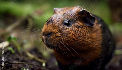 Fluffy guinea pig looking at camera outdoors generated by AI