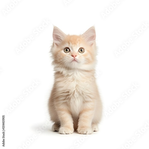 Fluffy Kitten with Tiny Pink Nose on Pure White Background Perfect for Graphic Design or Advertising