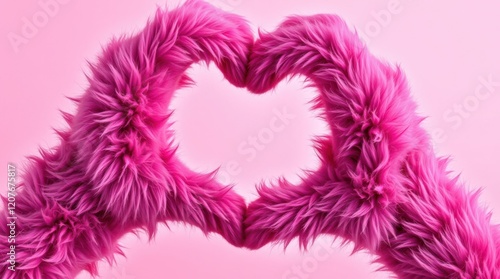 Fluffy pink arms forming a heart shape against a pink background. A cute and romantic image perfect for Valentine's Day or love-themed projects.