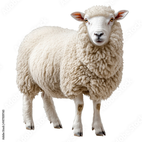 Fluffy ruminant standing majestically, showcasing dense wool against a neutral backdrop