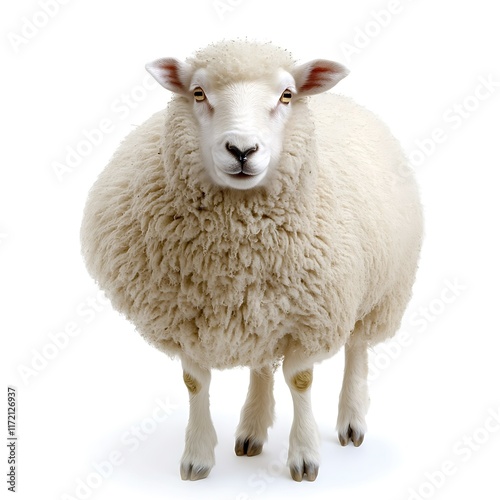 Fluffy sheep farm animal portrait, white background, agriculture.