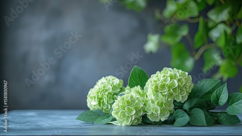 Fluffy Soft Green Decorative Flowers on a Gray Metal Table