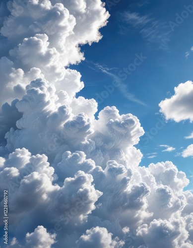 Fluffy white clouds against a brilliant blue sky with a subtle sense of depth and dimension, vast space, bright