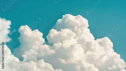 Fluffy White Clouds Against a Clear Blue Sky Background
