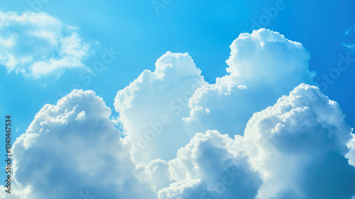 Fluffy white clouds drift across a bright blue sky, enhancing the tranquility of a summer day