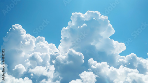 Fluffy white clouds floating in a bright blue sky, representing a clear and sunny day