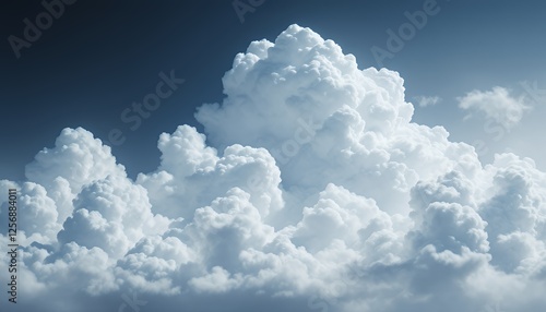 Fluffy White Clouds In Sky in front of a Blue Pastel Backdrop PlasticShiny Style White Cloud. The clouds are shown is a blue sky the image is also a good visual and has a light and airy atmosphere