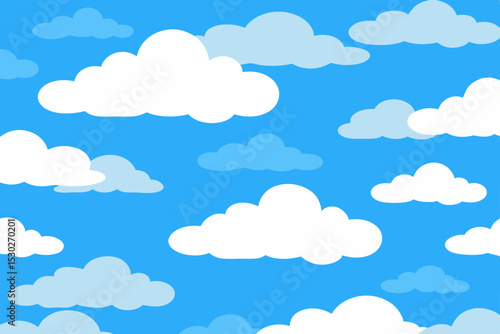 Fluffy White Clouds Seamless Pattern A Bright Blue Sky Background Illustration