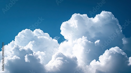 Fluffy white cumulus clouds against a vibrant blue sky.