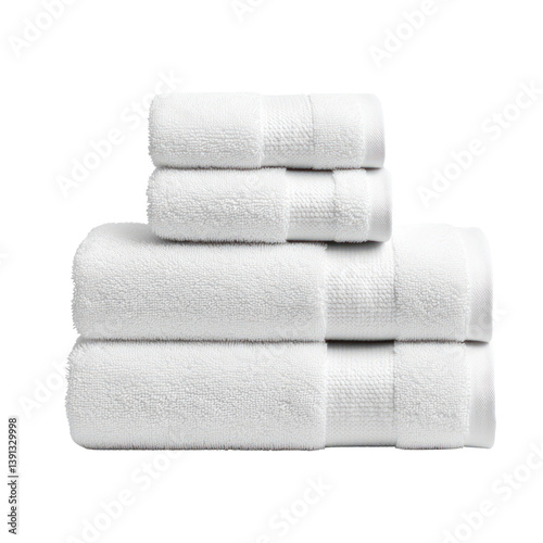 Fluffy white towels for home use cutout background cozy bathroom setting comfort and cleanliness