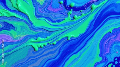 Fluid Art Abstract Texture with Blue Green and Purple Swirls