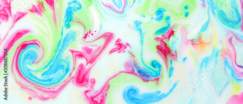 Fluid art. Trendy wallpaper. Abstract multicolored background. Holographic background. Design backdrop. Widescreen