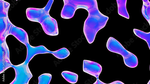 Fluid color glass drops y2k background. Holographic dynamic iridescent retrowave liquid forms. 3d render illustration