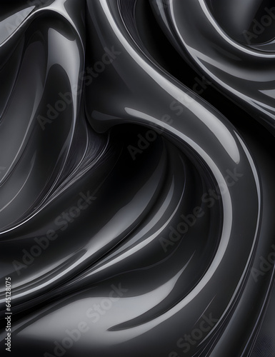 Fluid Interplay of Textures A Fusion of Gossamer Silk and Glistening Plastic in black Wave Symphony