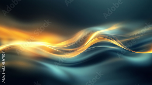 Fluid patterns of light create mesmerizing waves in vibrant gold and blue tones during a tranquil moment in the evening Generative AI