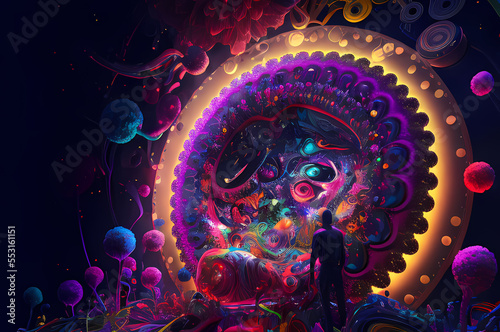 Fluorescent Dreamy Mystical colorful glowing fantasy world Imagination of start of mind