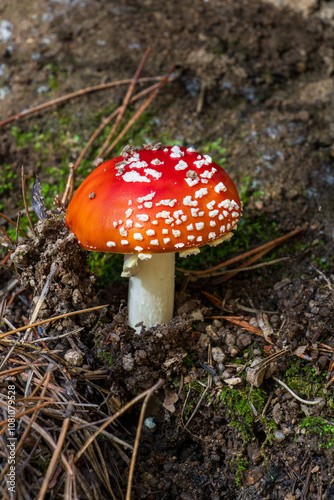 Fly agaric mushroom in the forest