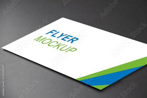 Flyer Mockup on Anthracite Gray Background on Office Desk