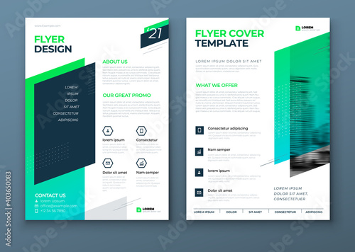 Flyer template layout design. Green and Teal Corporate business flyer mockup. Creative modern vector flier concept with dynamic abstract shapes on background
