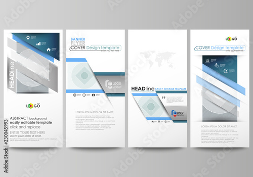 Flyers set, modern banners. Business templates. Cover design template, abstract vector layouts. Minimalistic background with lines. Gray color geometric shapes forming simple beautiful pattern.