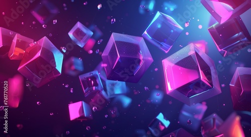 Flying 3d Fluid shapes, cubes background design for wallpaper, minimalism, business card, cover, poster, banner, copy space , light colour