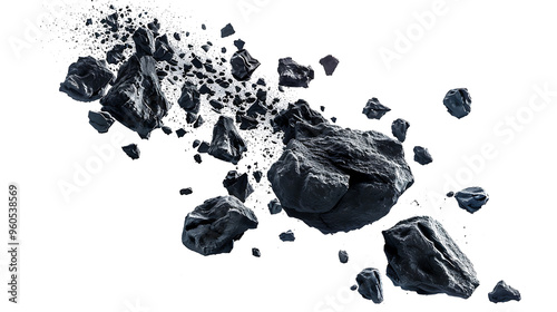 flying, asteroid, insolated, withe, stone, isolated, mineral, black