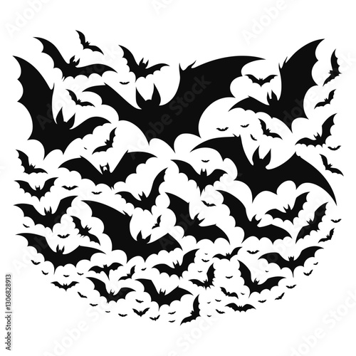 Flying Bat Silhouette Vector – Spooky Swarm of Bats for Halloween, Gothic Designs, and Horror Themes