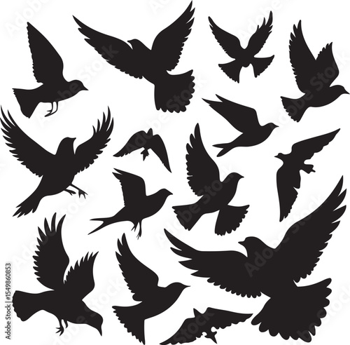 Flying Bird Silhouette Set – multiple birds in flight with varied wing positions.