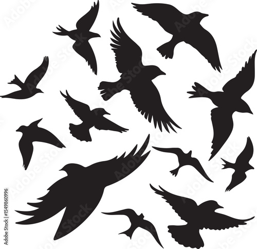 Flying Bird Silhouette Set – multiple birds in flight with varied wing positions.