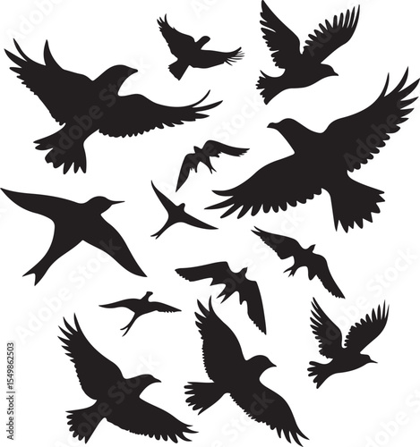 Flying Bird Silhouette Set – multiple birds in flight with varied wing positions.