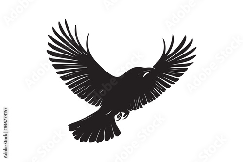 Flying Bird with Spread Wings Silhouette - Black and White Vector Art