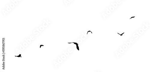 Flying birds silhouette flock. hand drawing. Not AI. Vector illustration