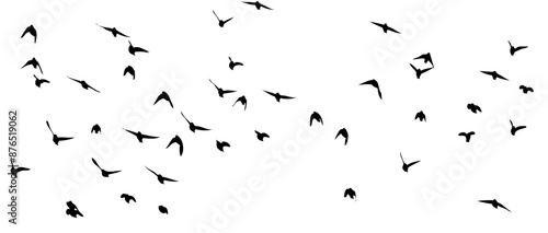 Flying birds silhouette flock. hand drawing. Not AI, Vector illustration