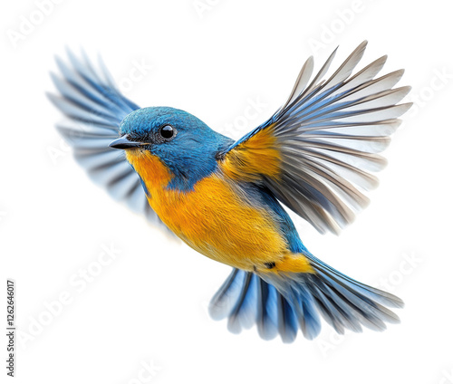 Flying blue bird in nature scene isolated on transparent background